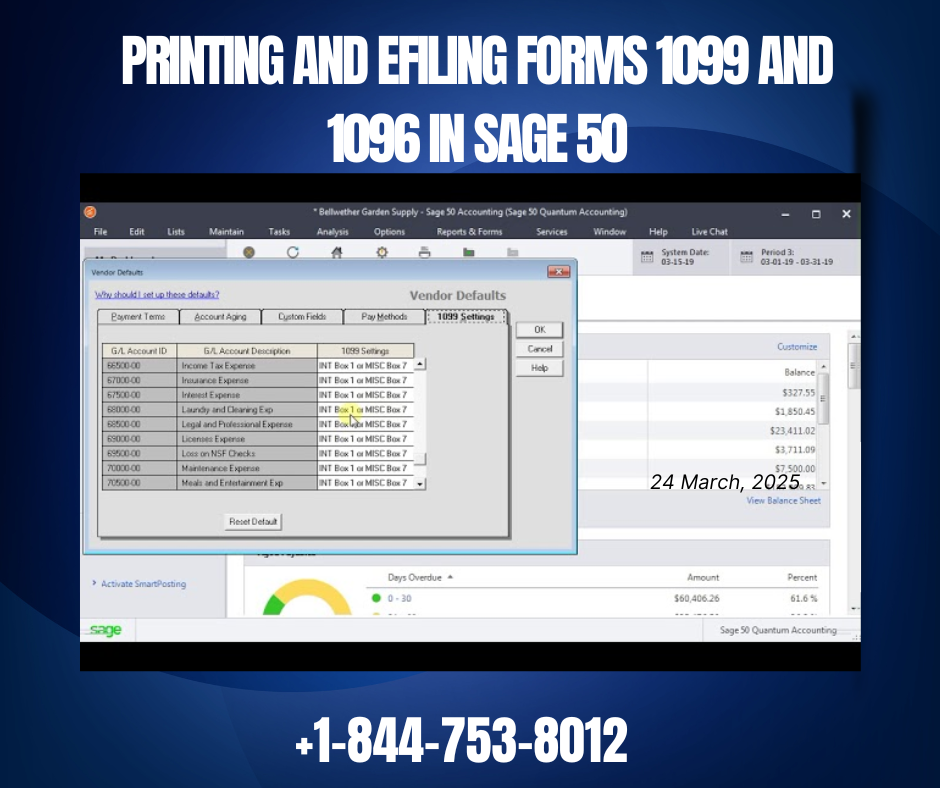 Printing and eFiling Forms 1099 and 1096 in Sage 50 is straightforward. Navigate to the Payroll or Vendors section, select the appropriate tax year, review contractor information, and generate forms. Choose print or eFile, verify accuracy, and submit. Following these steps ensures compliance and smooth year-end reporting. For expert assistance, you can call Sage 50 support at 844-753-8012.